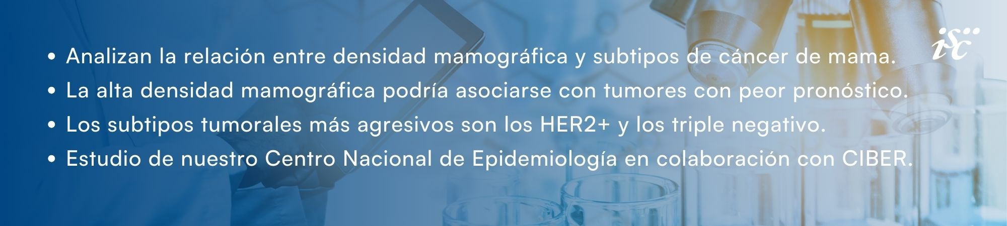 Un estudio realizado desde el instituto de Salud Carlos III (ISCIII) ha analizado la relación entre densidad mamográfica y los subtipos de cáncer de mama, y sus resultados sugieren que una alta densidad mamográfica podría estar asociada con el desarrollo de tumores con peor pronóstico. La investigación ha sido liderada por el Centro Nacional de Epidemiología (CNE), con participación del Centro de Investigación Biomédica en Red (CIBER-ISCIII), en colaboración con ocho centros hospitalarios distribuidos por la geografía española.
