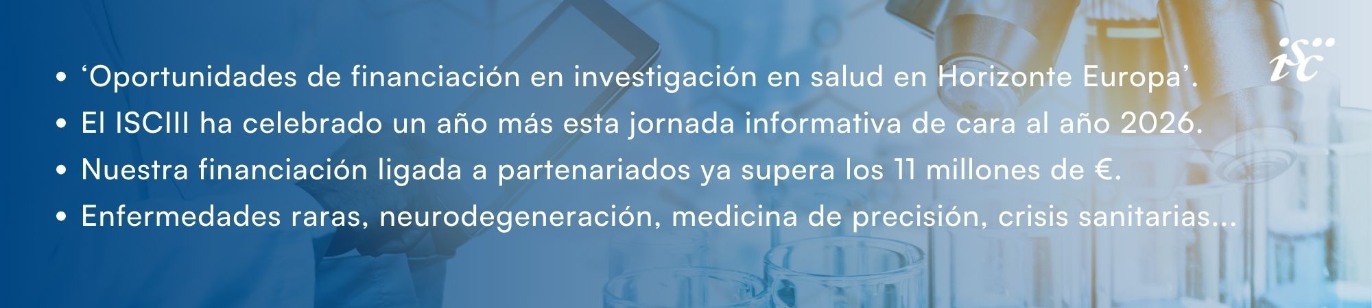 •    Partenariado EP PerMed. El ISCIII es socio. Convocatoria de medicina personalizada CARMEN2026. 3 millones de €.